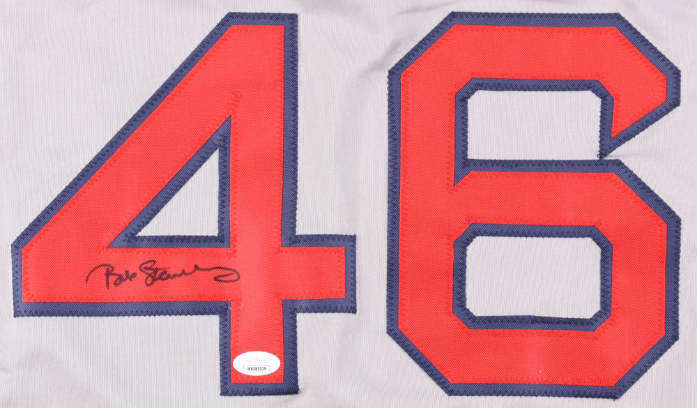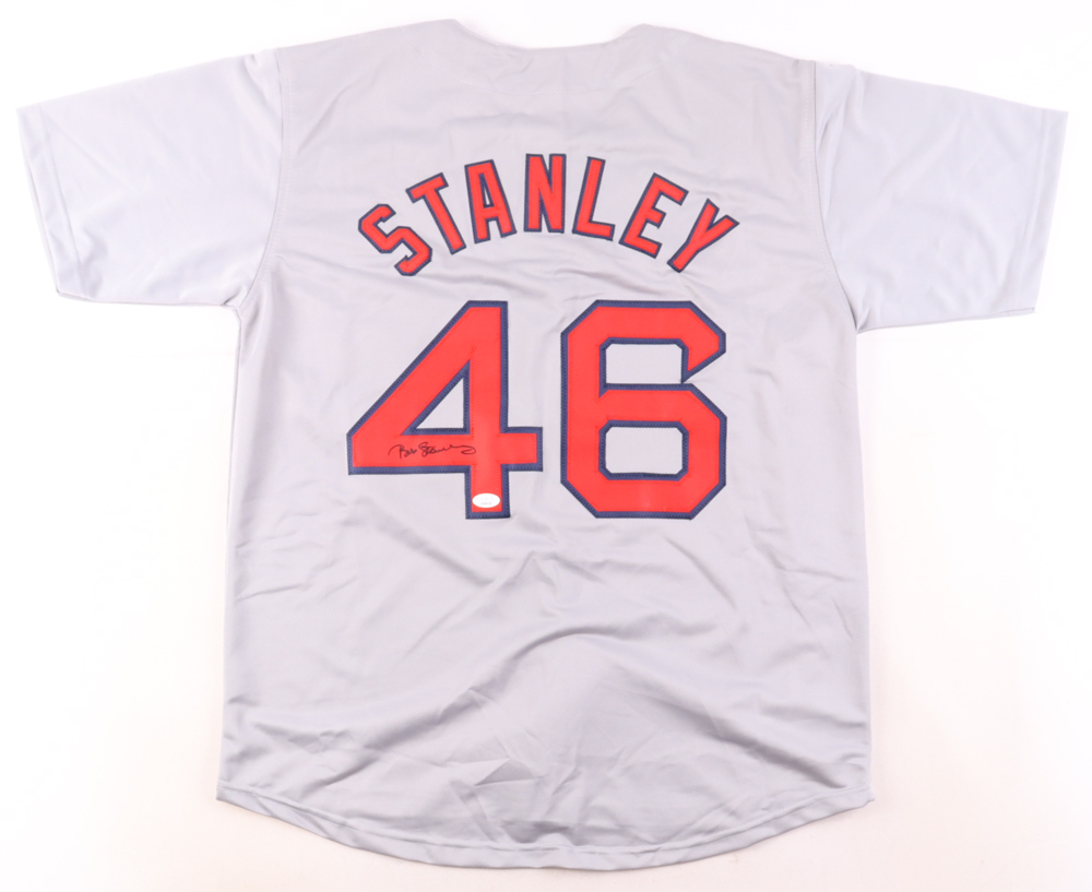 Custom jersey with everything sewn on, size XL. Hand-signed by Bob Stanley.