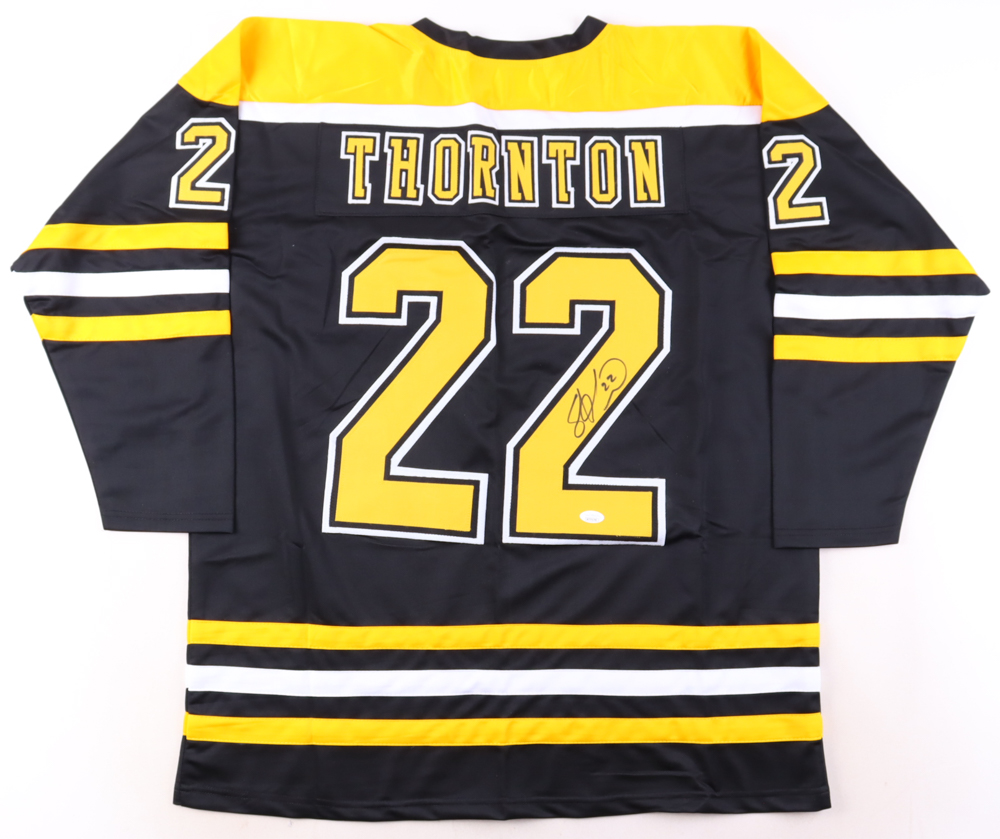 Custom jersey with everything sewn on, size XL. Hand-signed by Shawn Thornton.