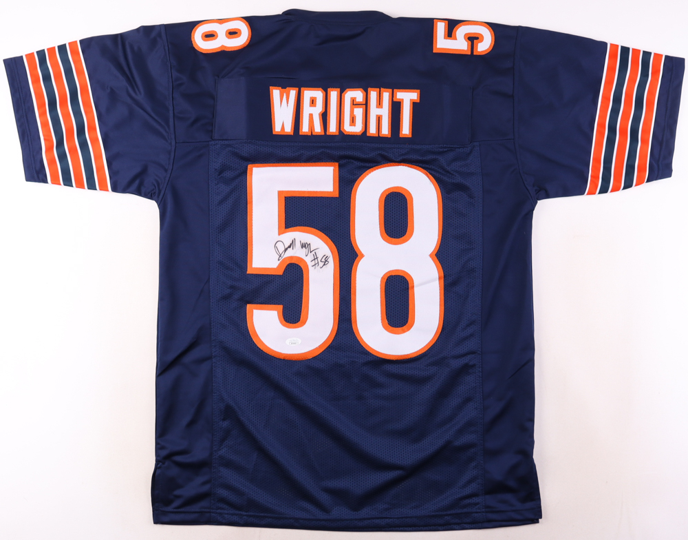 Custom jersey with everything sewn on, size XL. Hand-signed by Darnell Wright. Please note, the signature ink has bled.