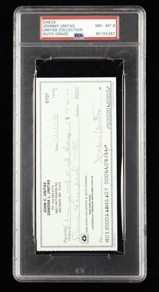Johnny Unitas Signed 1999 Personal Check (PSA | Autograph Graded 8)