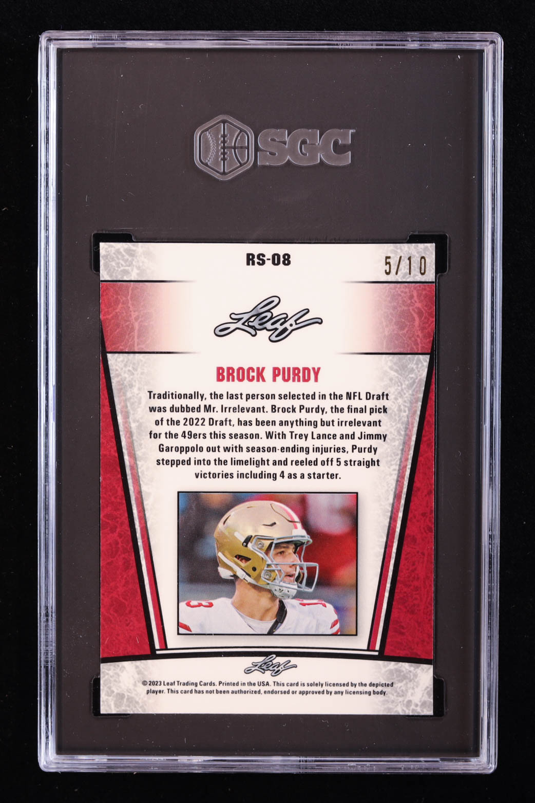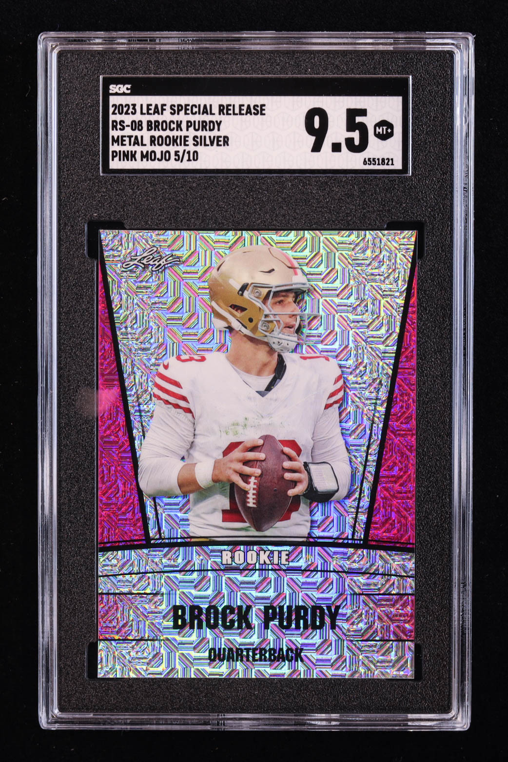 Brock Purdy 2023 Leaf Metal Special Release Rookie Silver Mojo Pink #RS08 RC #5/10 (SGC 9.5)
