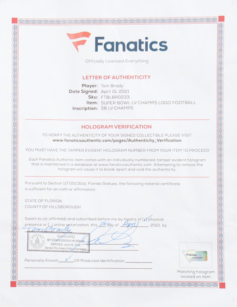 The autograph includes an official Fanatics hologram and matching LOA for authenticity purposes.