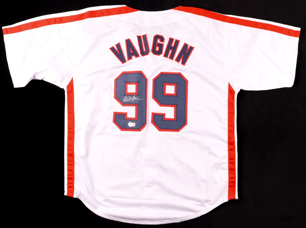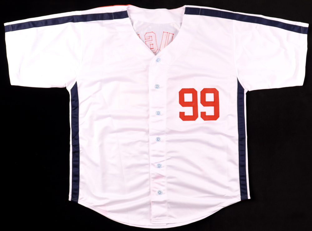 Custom jersey with everything sewn on, size XL. Hand-signed by Charlie Sheen (Ricky "Wild Thing" Vaughn).