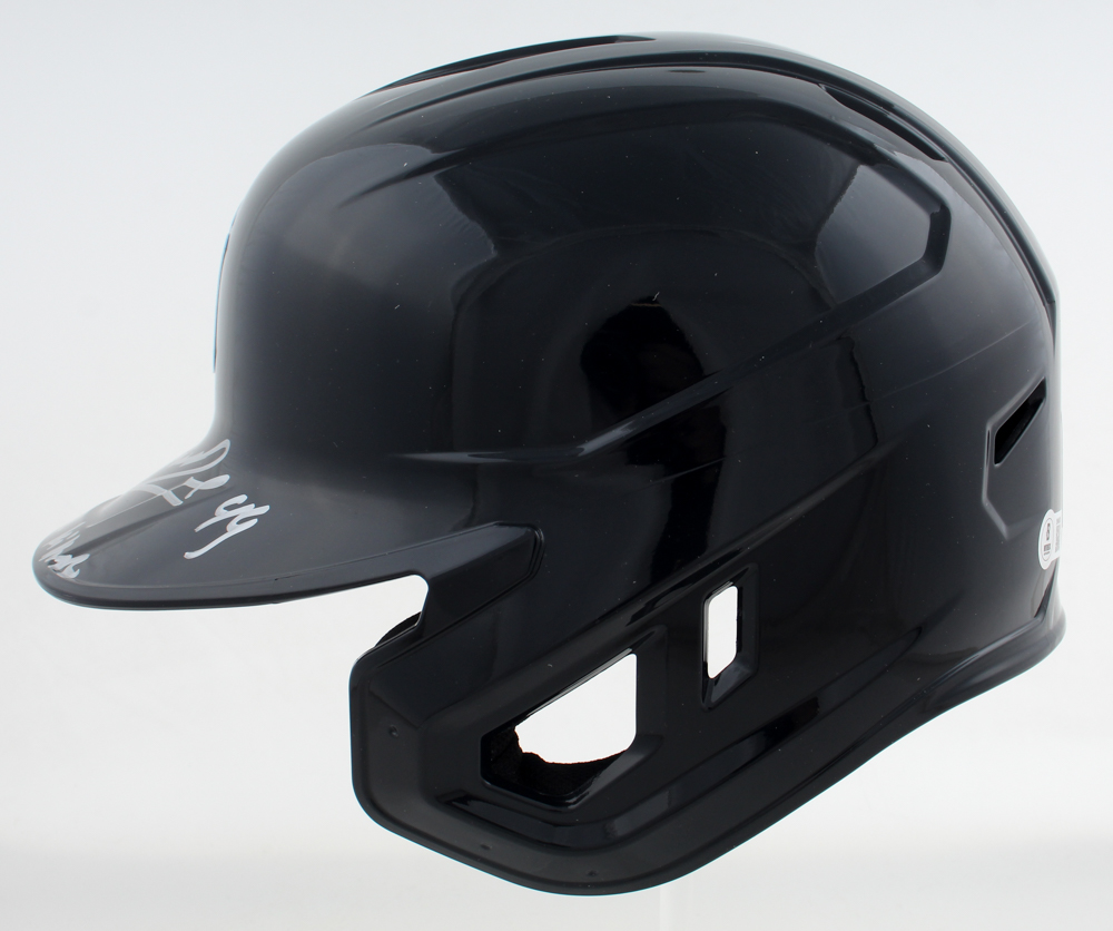 RawlingsNew York Yankees full-size replica baseball batting helmet. Hand-signed and inscribed by Manny Ramirez.