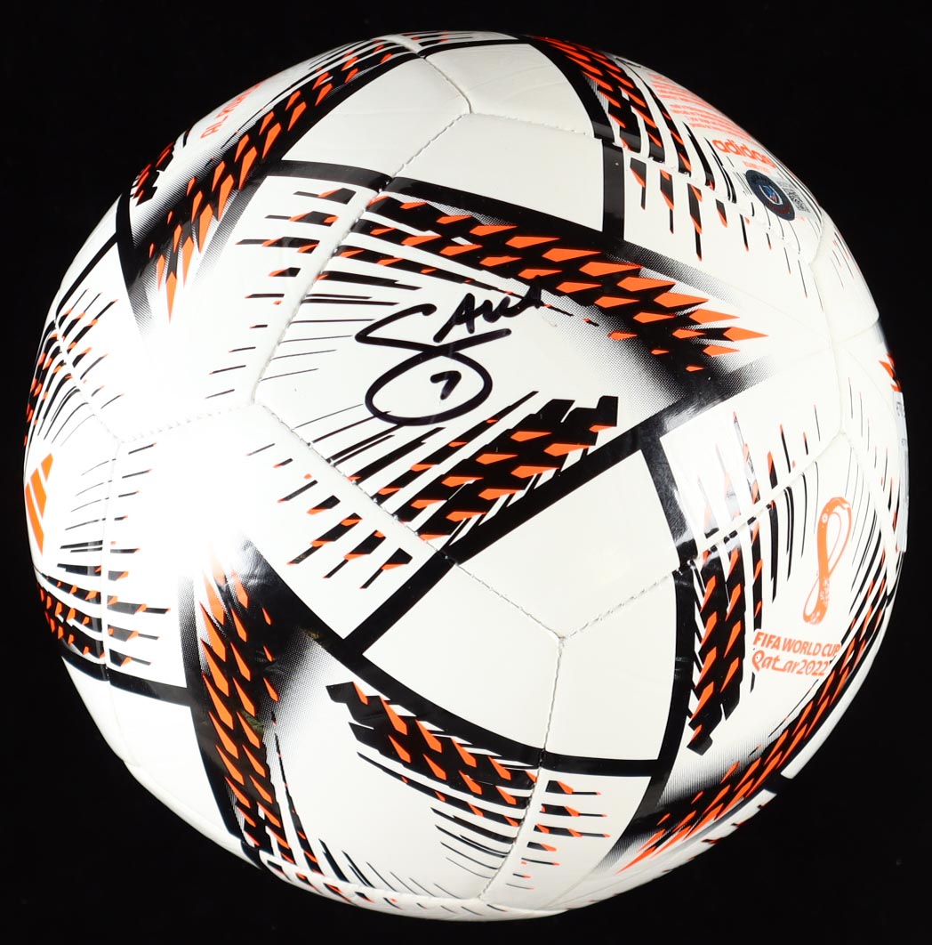 Adidas 2022 Qatar FIFA World Cup soccer ball has been hand-signed by Bukayo Saka.