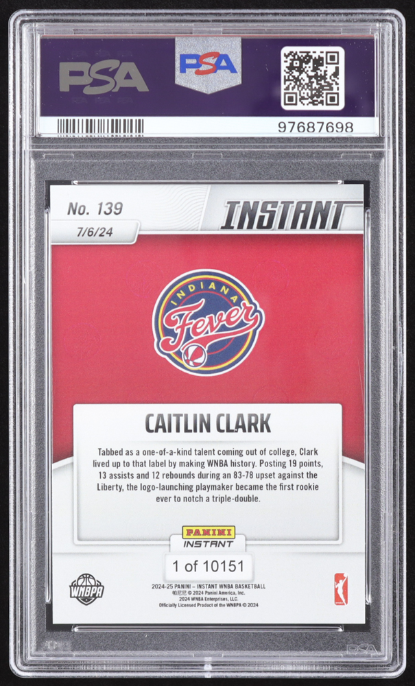Caitlin Clark 2024 Panini Instant WNBA #139 RC (PSA 10)