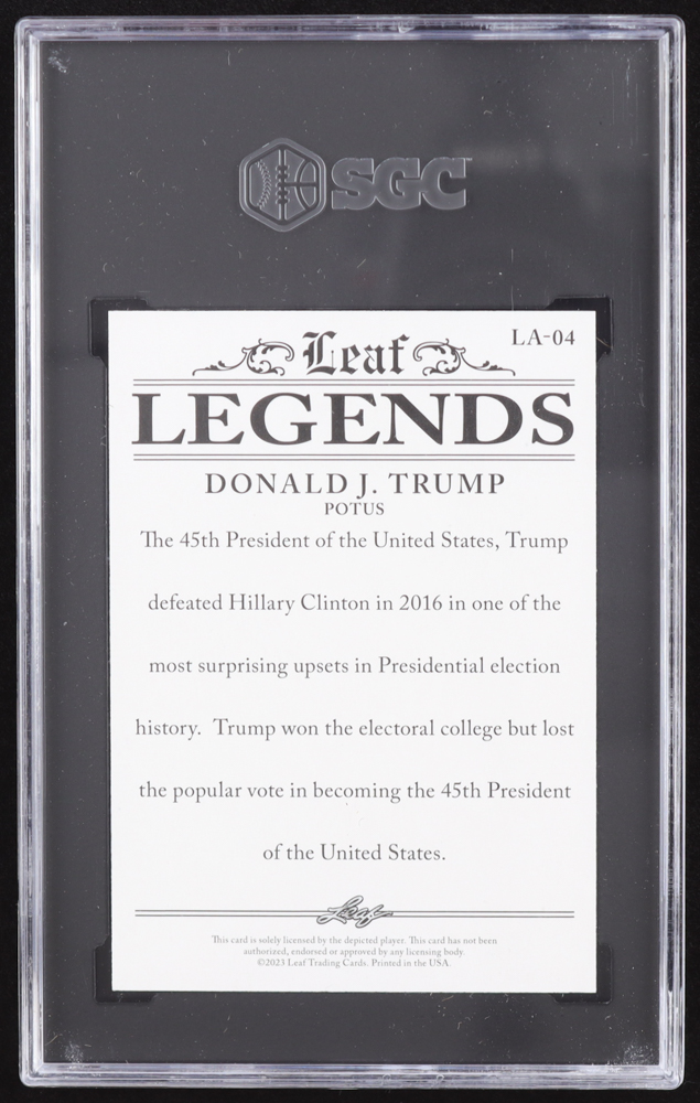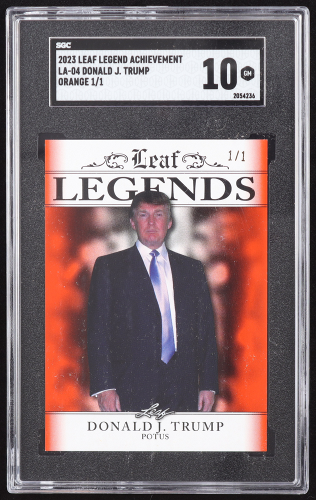 Donald J. Trump 2023 Leaf Special Release Legends Achievement Orange #LA04 #1/1 (SGC 10)