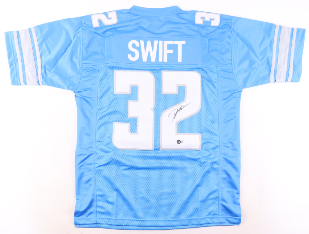 Custom jersey with everything sewn on, size XL. Hand-signed by D'Andre Swift.