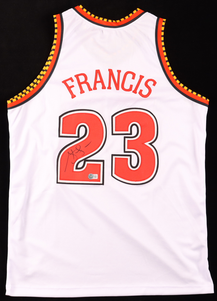 Custom jersey with everything sewn on, size XL. Hand-signed by Steve Francis.