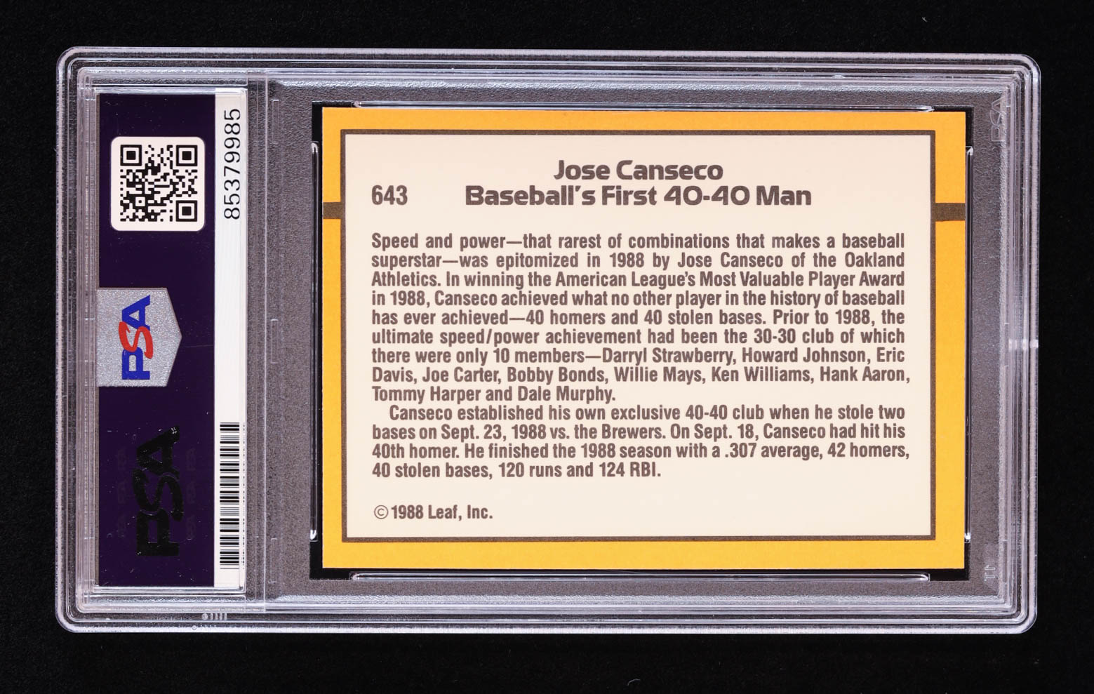 Jose Canseco Signed 1989 Donruss #643 / 40-40 Club (PSA)