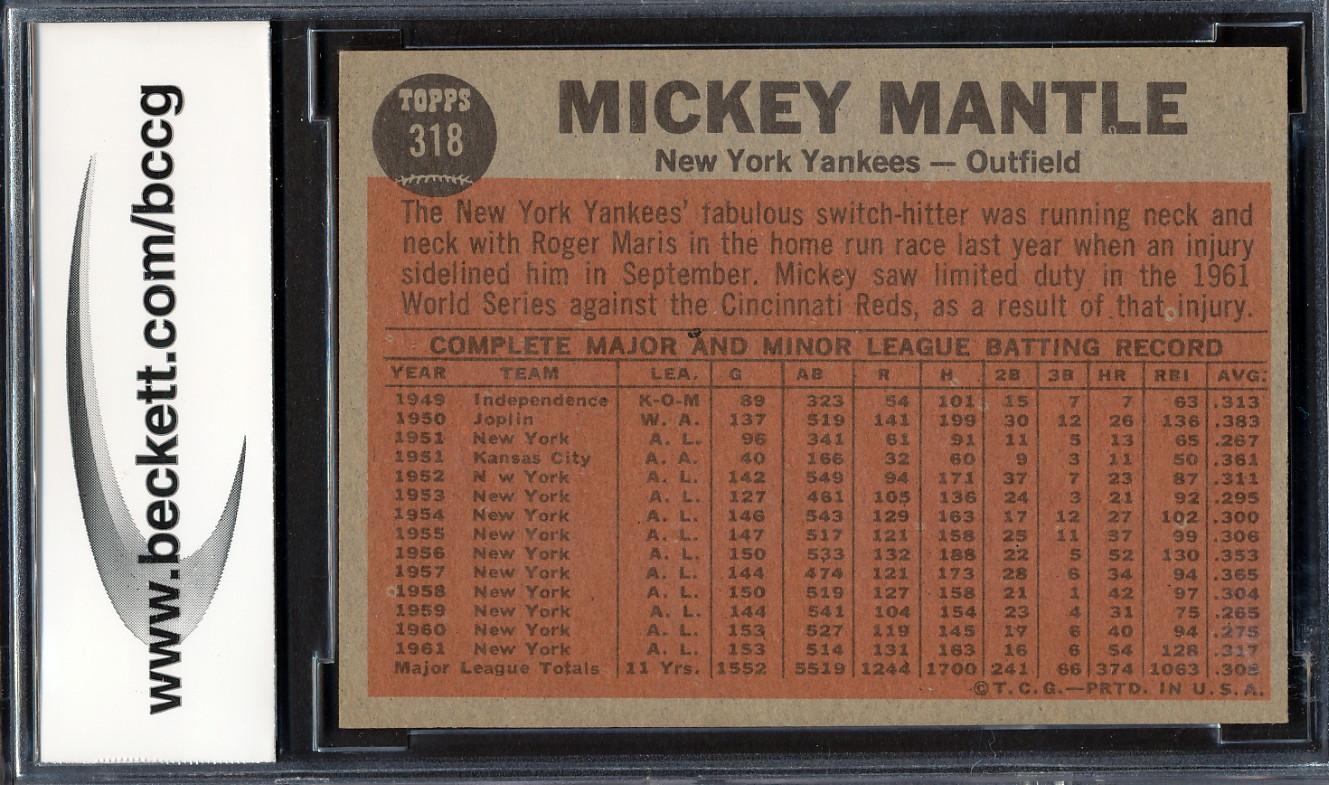Mickey Mantle 1962 Topps #318 IA (BCCG 8)