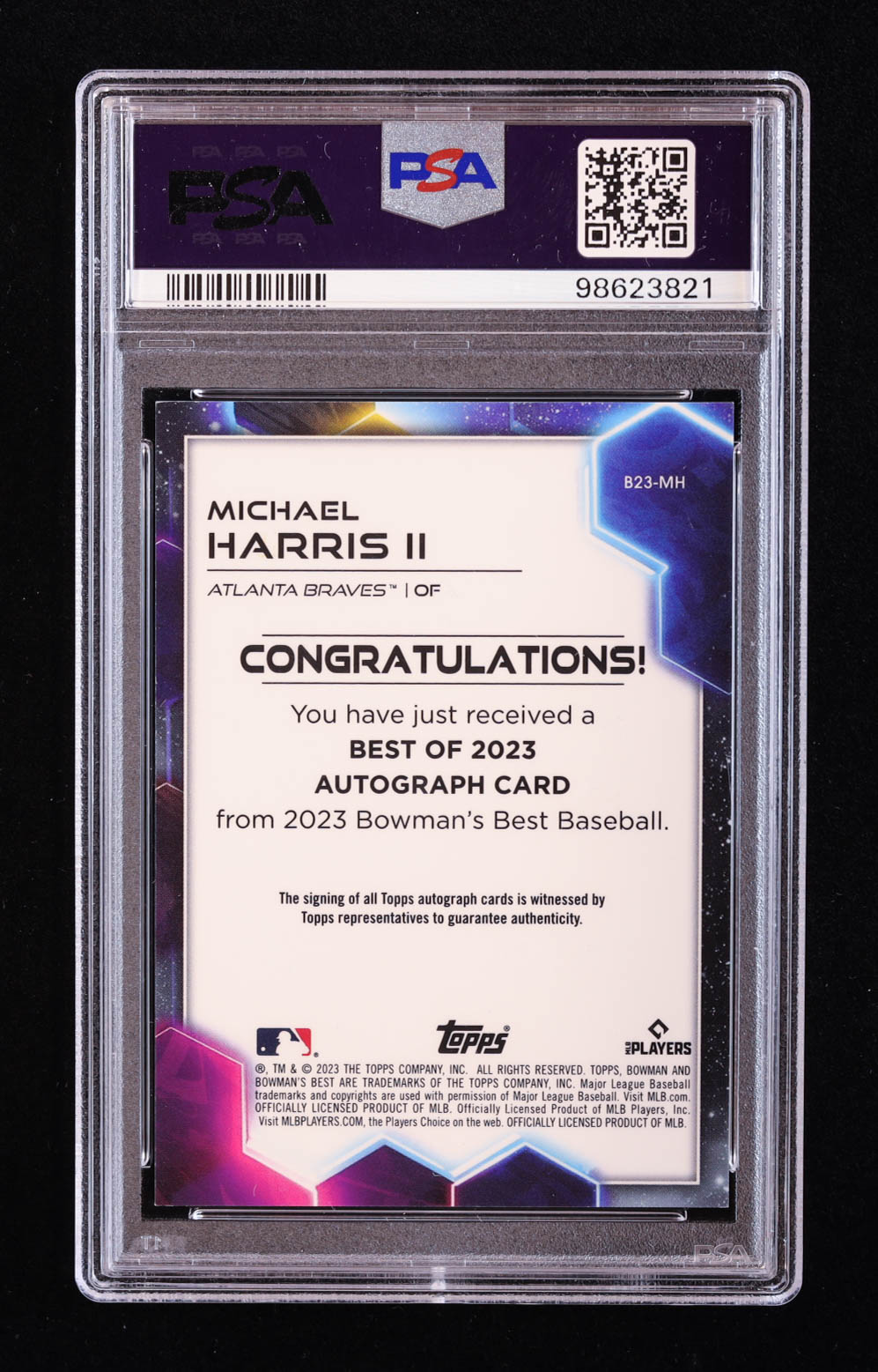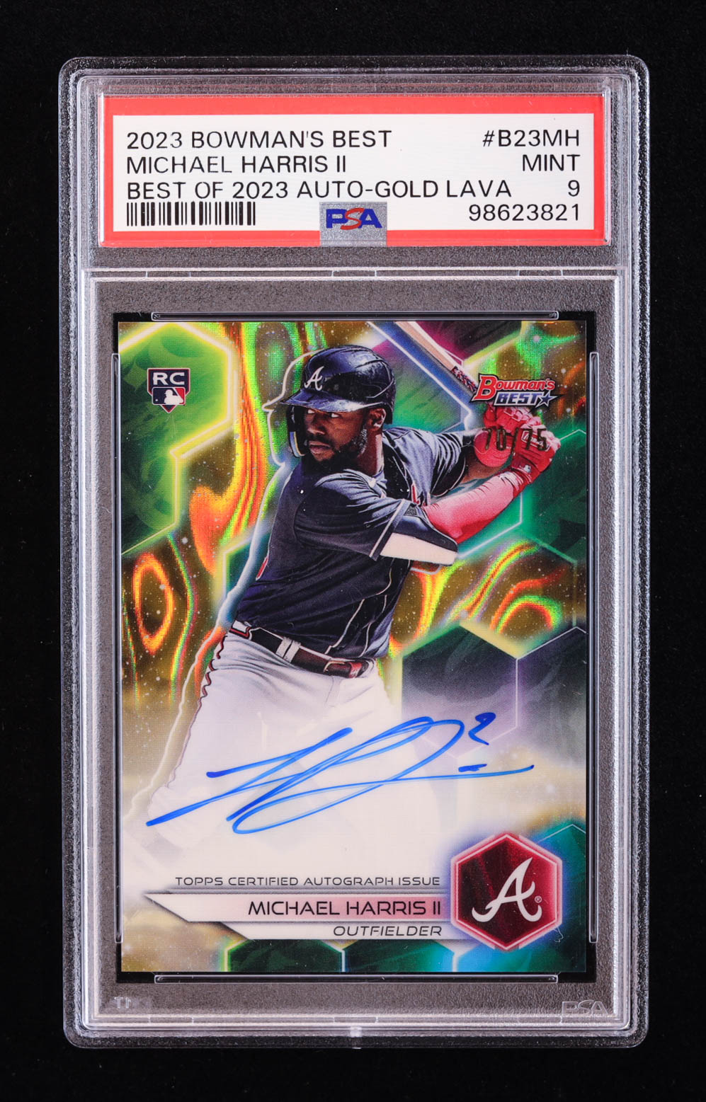 Michael Harris II 2023 Bowman's Best Best of '23 Autographs Gold Lava Refractors #B23MH #70/75 RC (PSA 9)