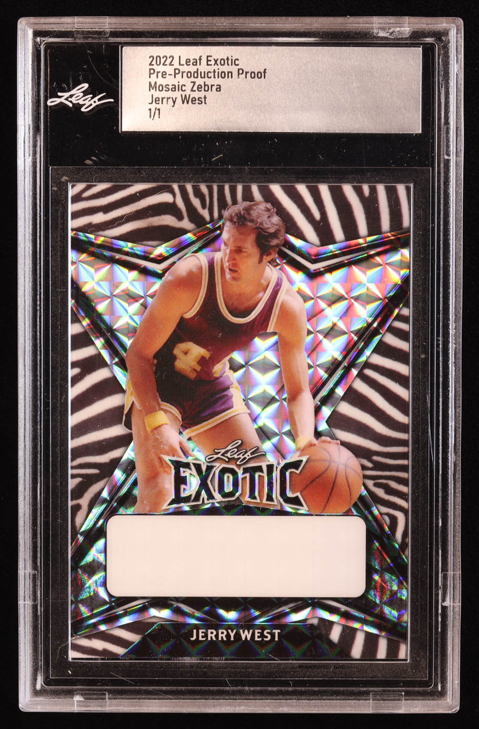 Jerry West 2022 Leaf Exotic Mosaic Zebra Pre-Production Proof #1/1 (Leaf)