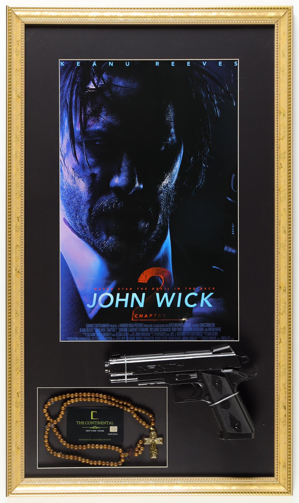"John Wick: Chapter 2" Custom Framed Movie Poster Display with Replica Pistol, Continental Hotel Key Card & Wood Rosary