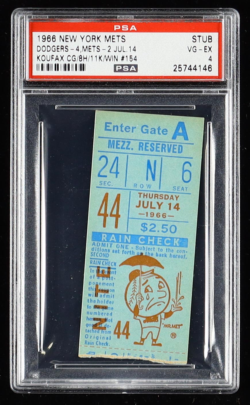 1966 Sandy Koufax Shea Stadium Ticket Stub with Program (PSA)