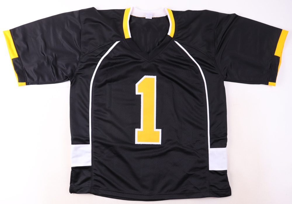 Custom jersey. Everything is sewn on, size XL. Hand-signed by Eliah Drinkwitz.