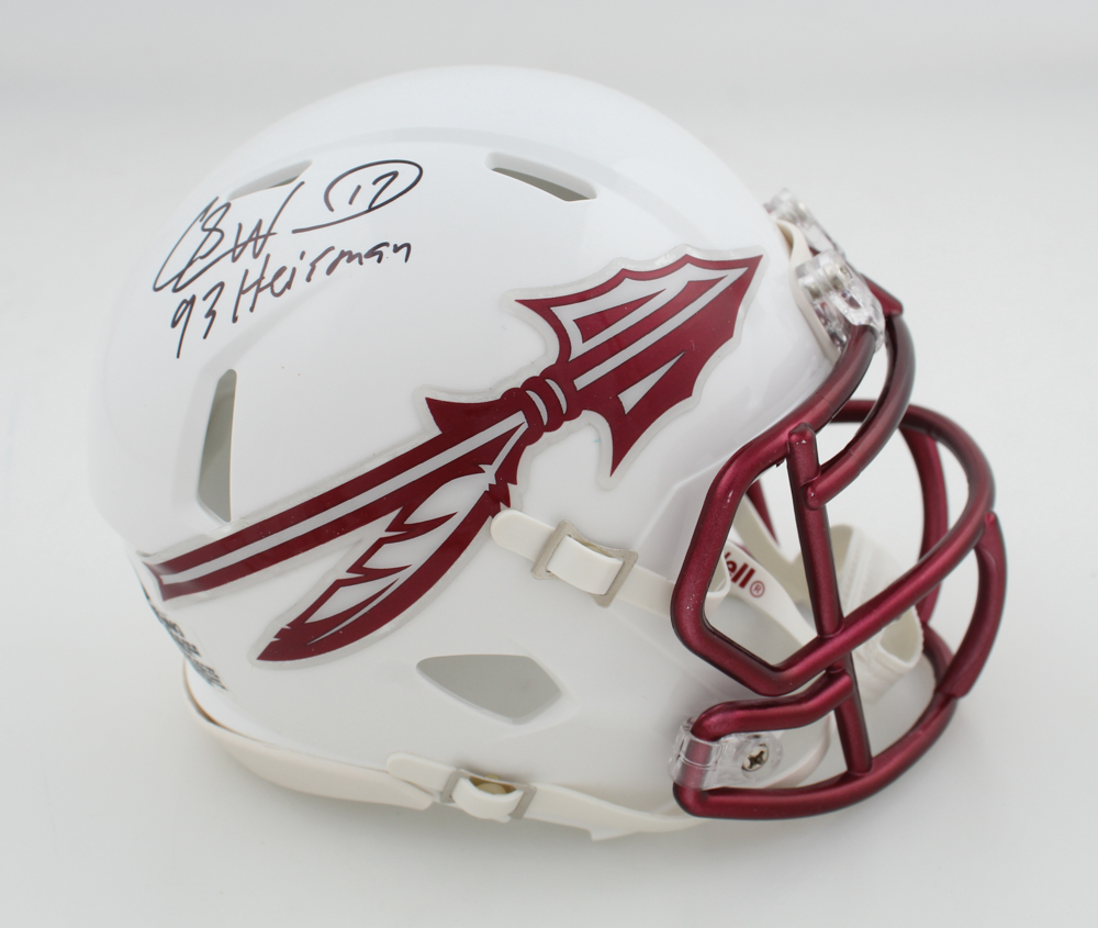 Riddell Florida State Seminoles Speed mini helmet. Hand-signed and inscribed by Charlie Ward.