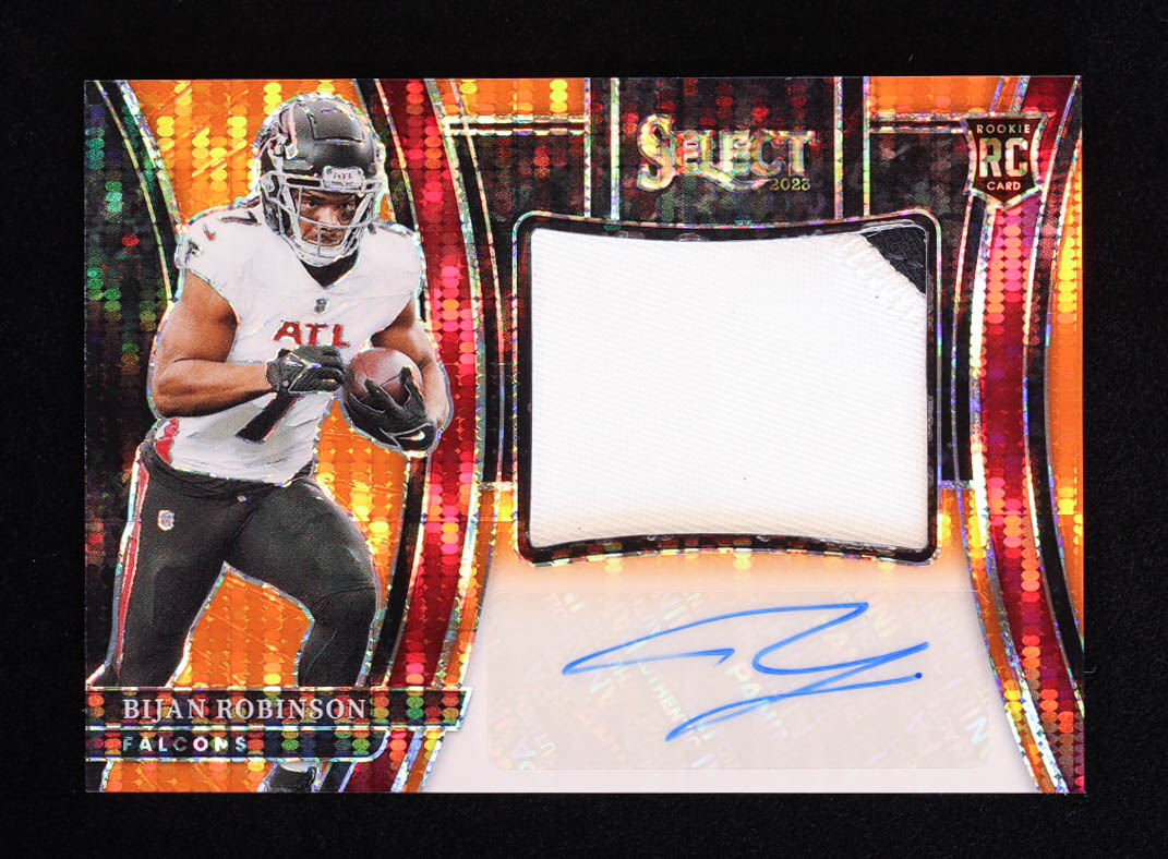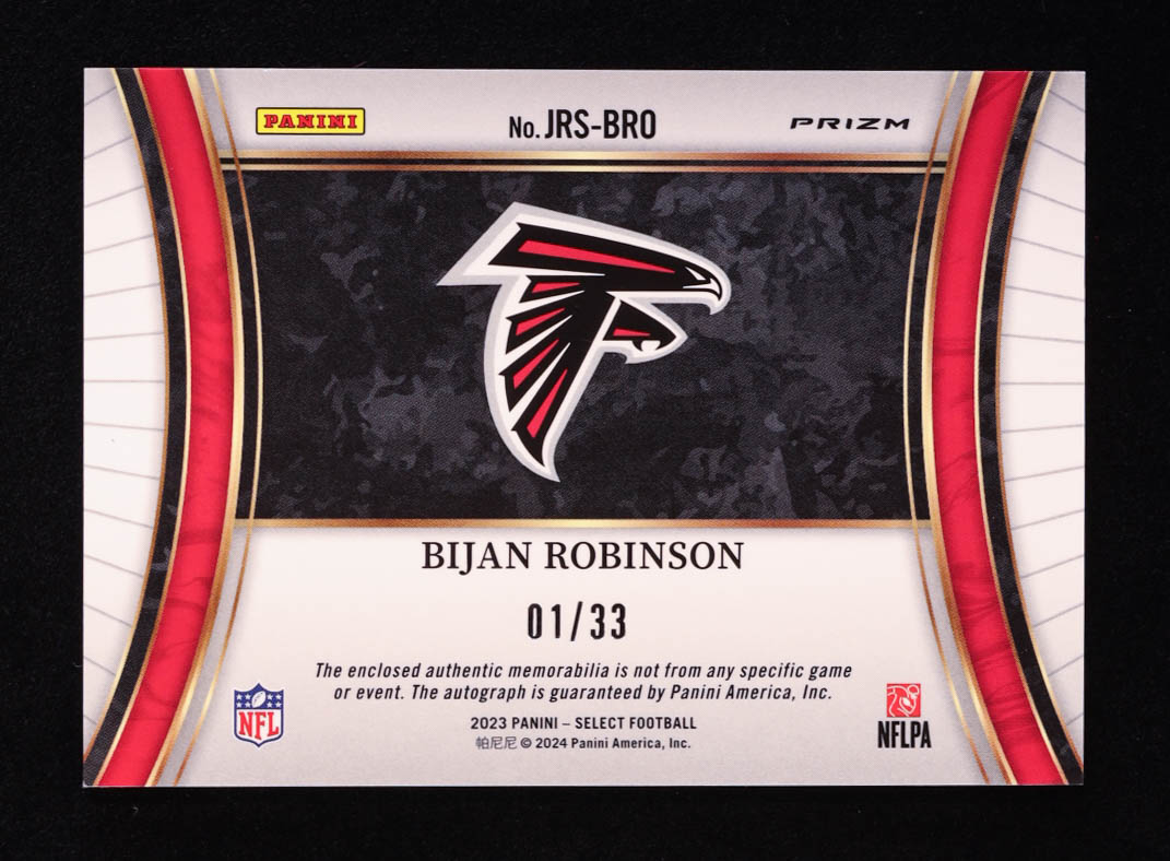 Bijan Robinson 2023 Select Jumbo Rookie Signature Swatches Prizm Neon Orange Pulsar #3 #01/33 RC