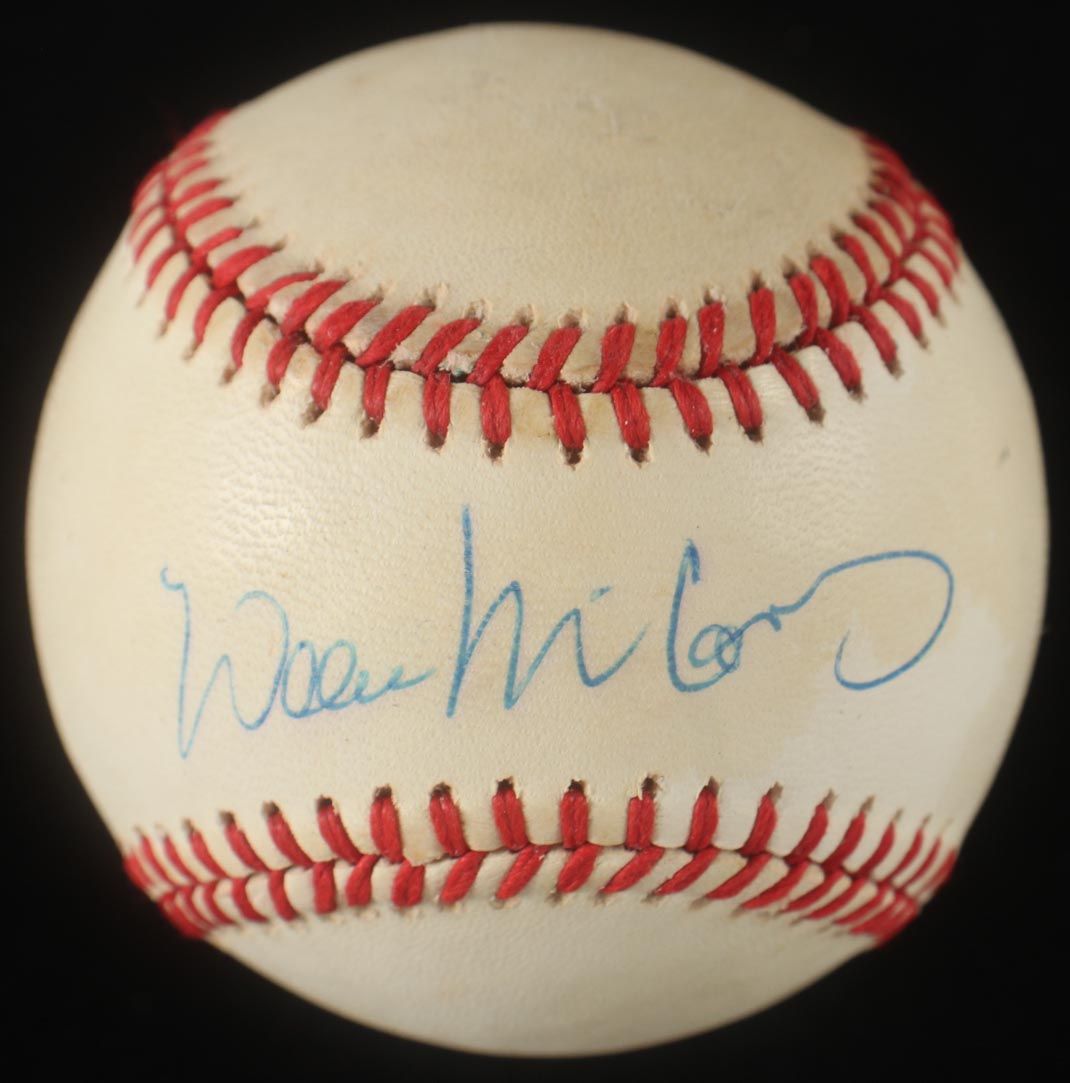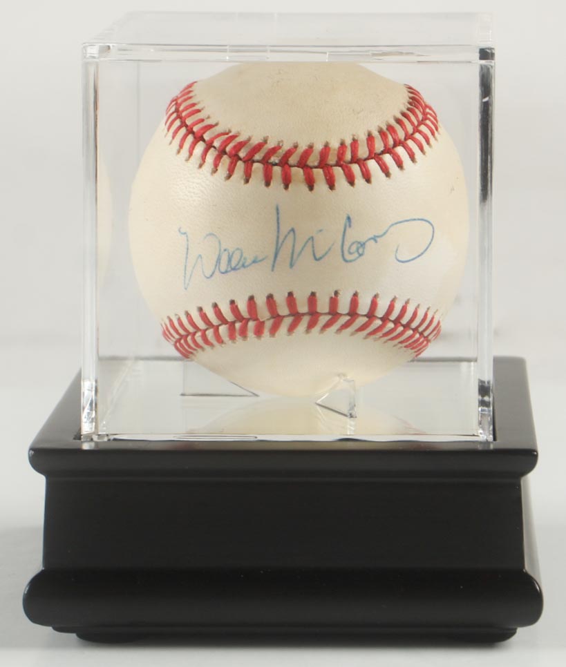 Rawlings Official National League Baseball. Hand-signed by Willie McCovey (D. 2018, San Francisco Giants, HOF). The display case is included as shown. Please note, the baseball is naturally toned.