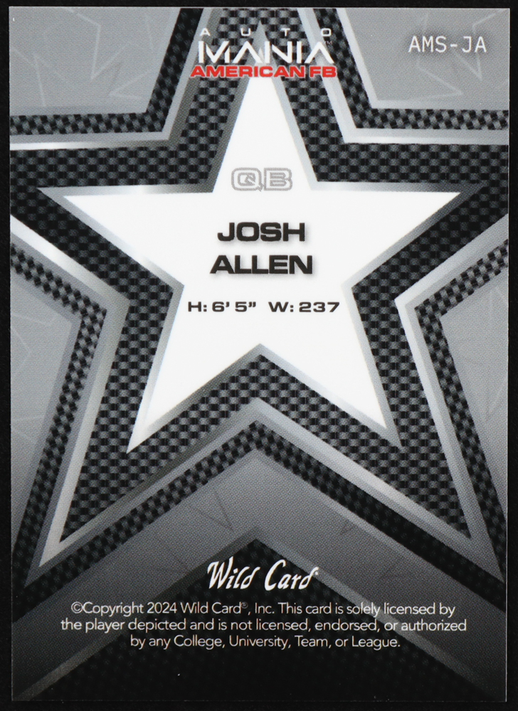Josh Allen 2024 Wild Card Auto Mania Red White and Blue Squares #AMSJA #2/5