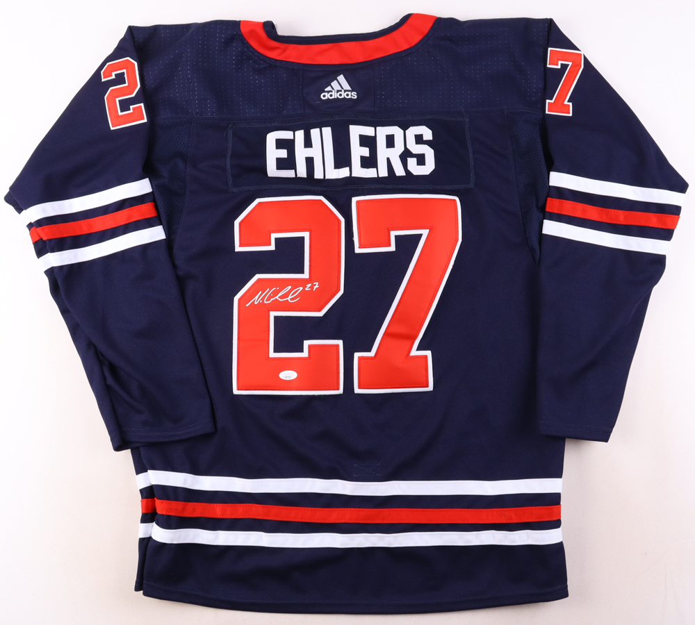 Adidas jersey. Everything is sewn on, size 54. Has been hand-signed by Nikolaj Ehlers.