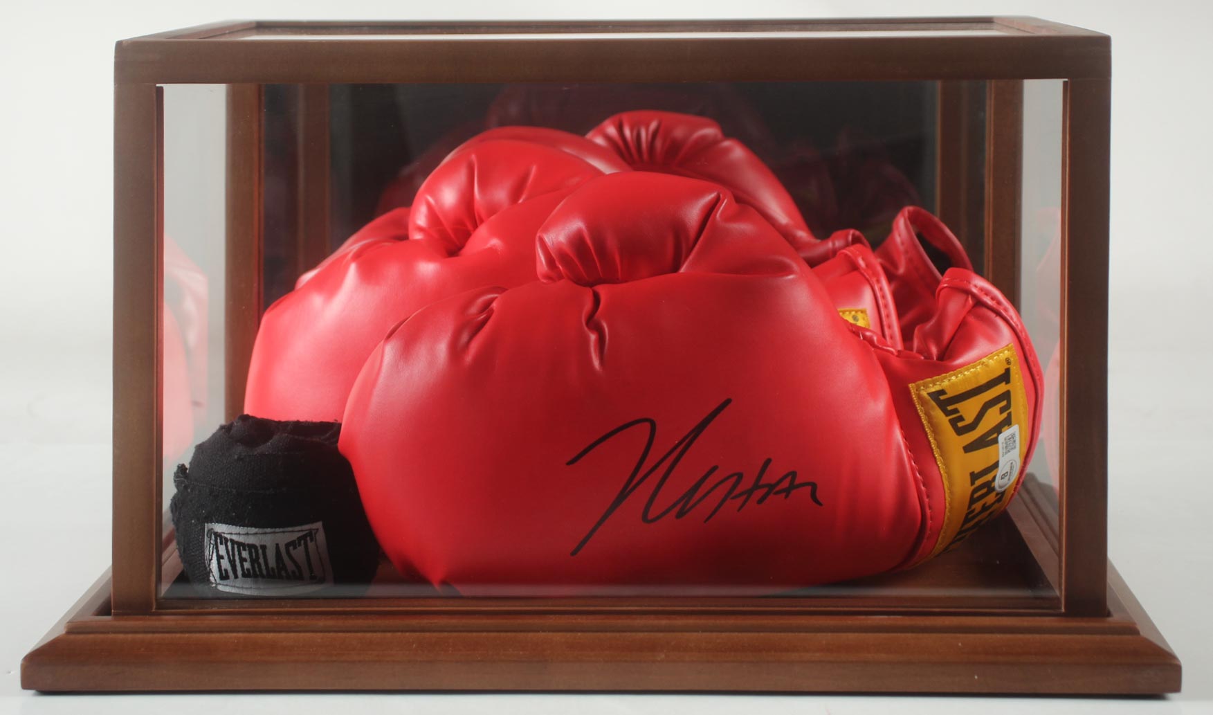 Julio Cesar Chavez Signed Pair of Everlast Boxing Gloves with Wrap in Wood Display Case (Beckett)