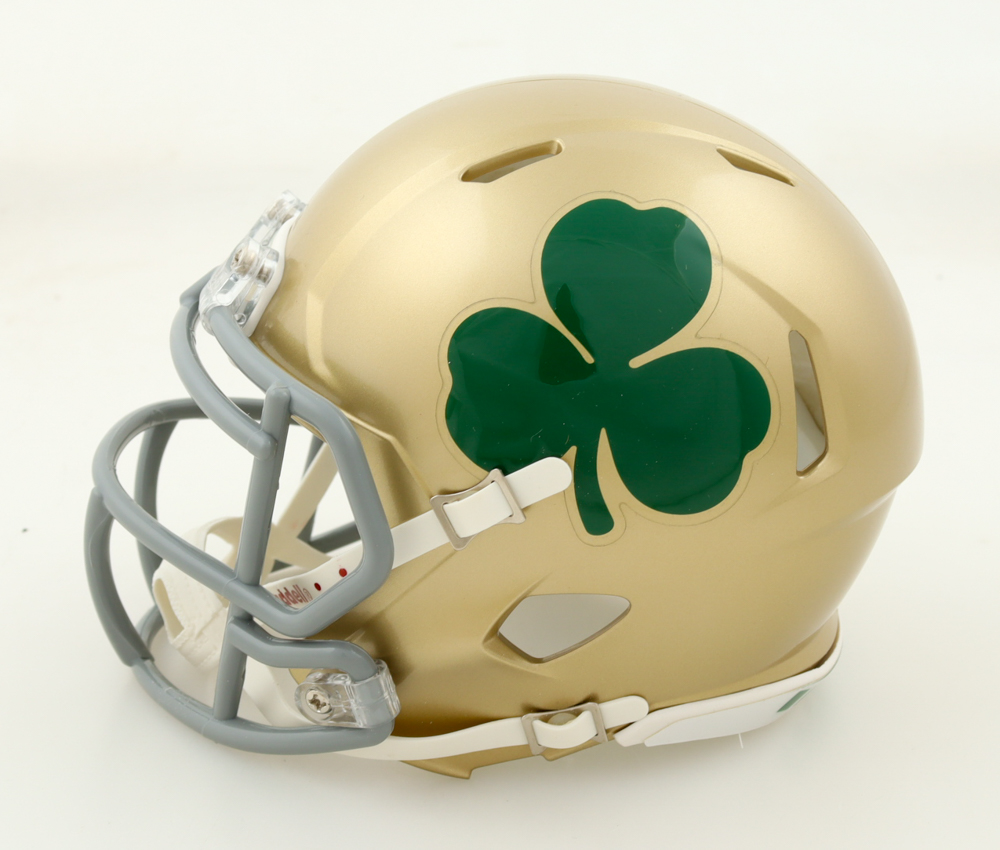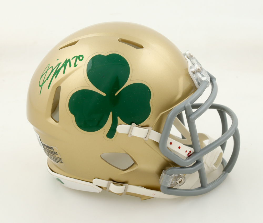 Riddell Notre Dame Fighting Irish Speed Mini Helmet has been hand-signed by Benjamin Morrison.