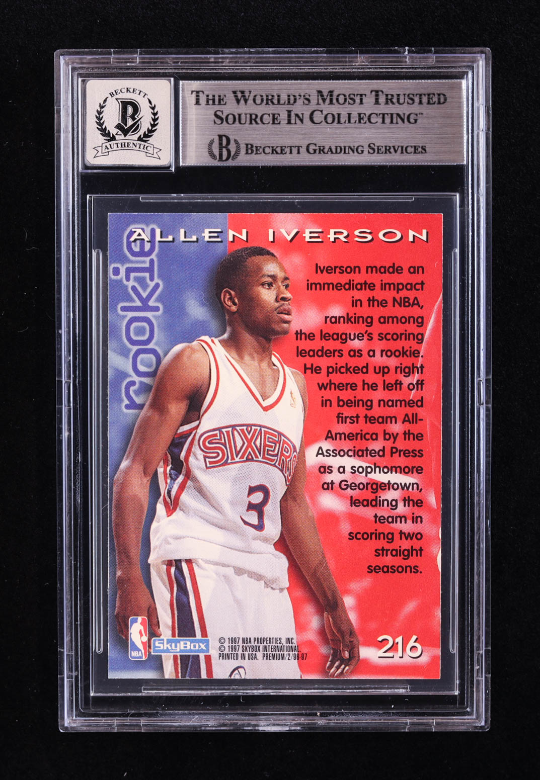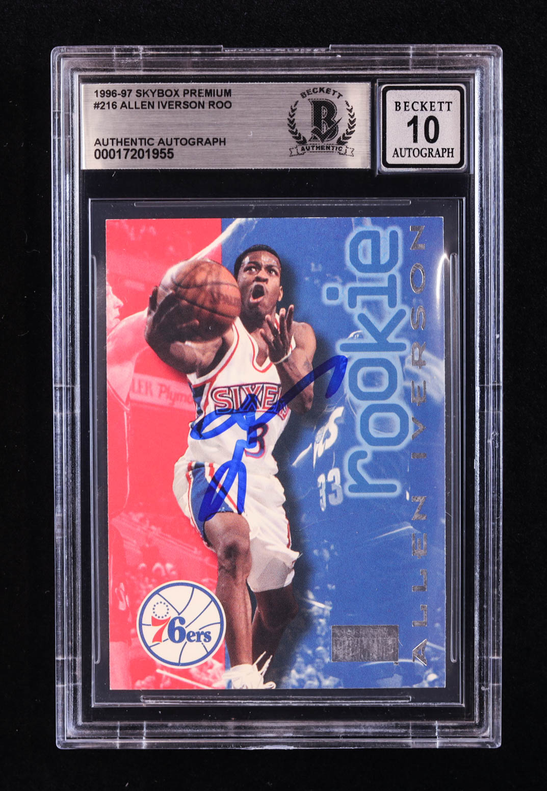 Allen Iverson Signed 1996-97 SkyBox Premium #216 ROO RC (BGS | Autograph Graded BGS 10)