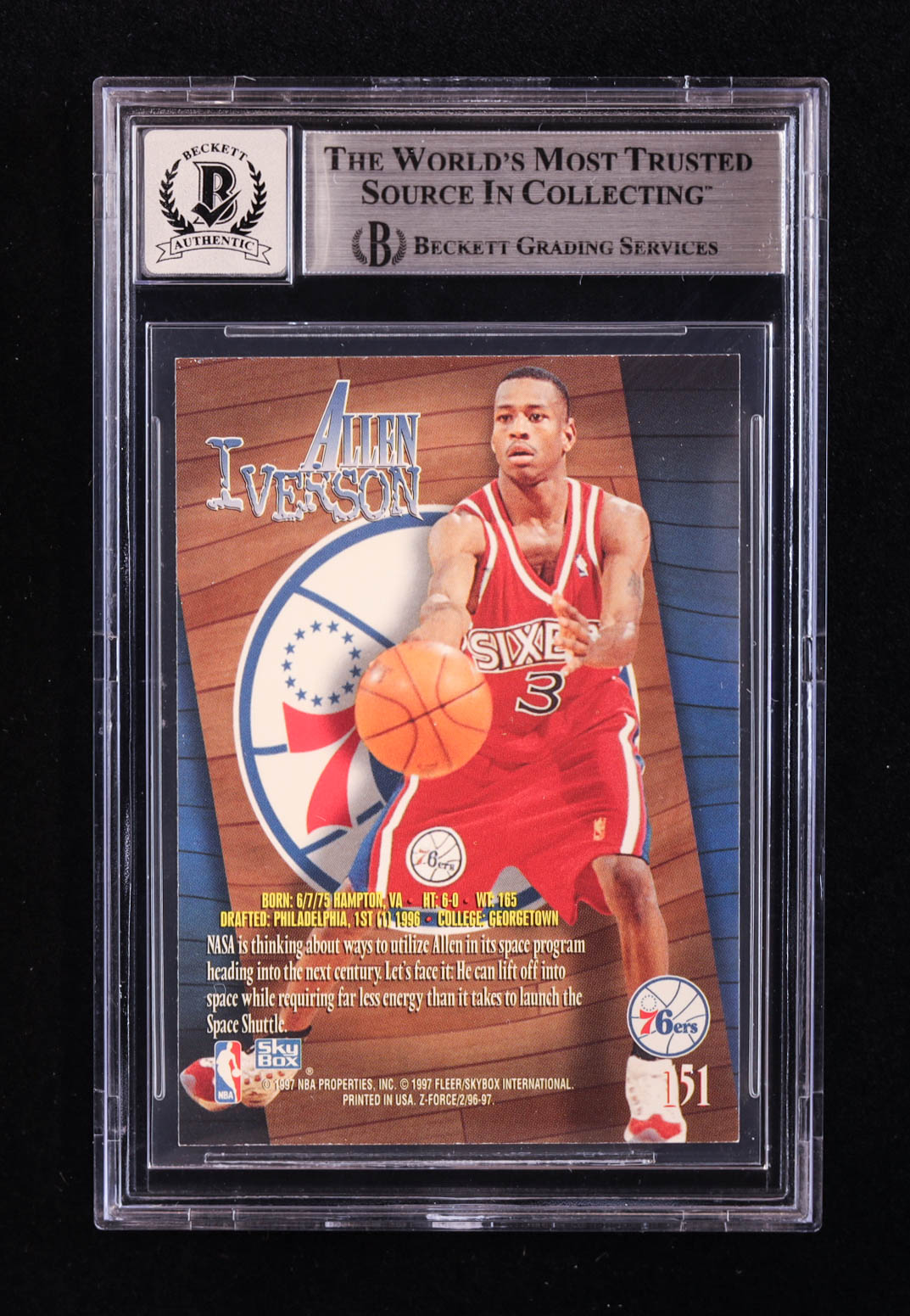 Allen Iverson Signed 1996-97 Z-Force #151 RC (BGS | Autograph Graded BGS 10)