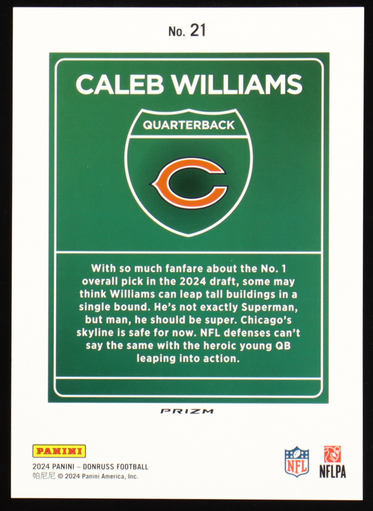 Caleb Williams 2024 Panini Donruss Football Oversized Downtown Jumbo #21 RC