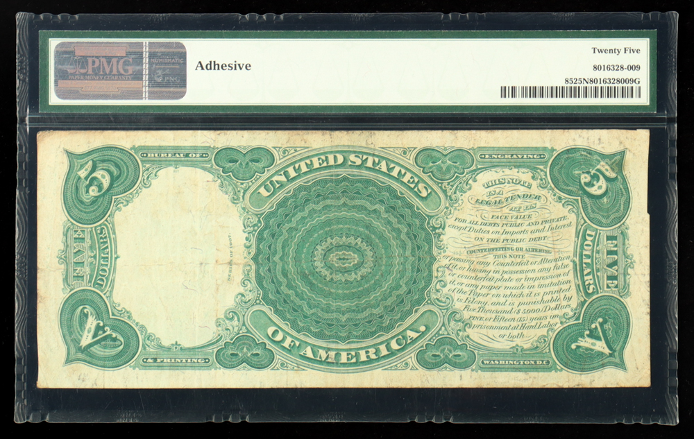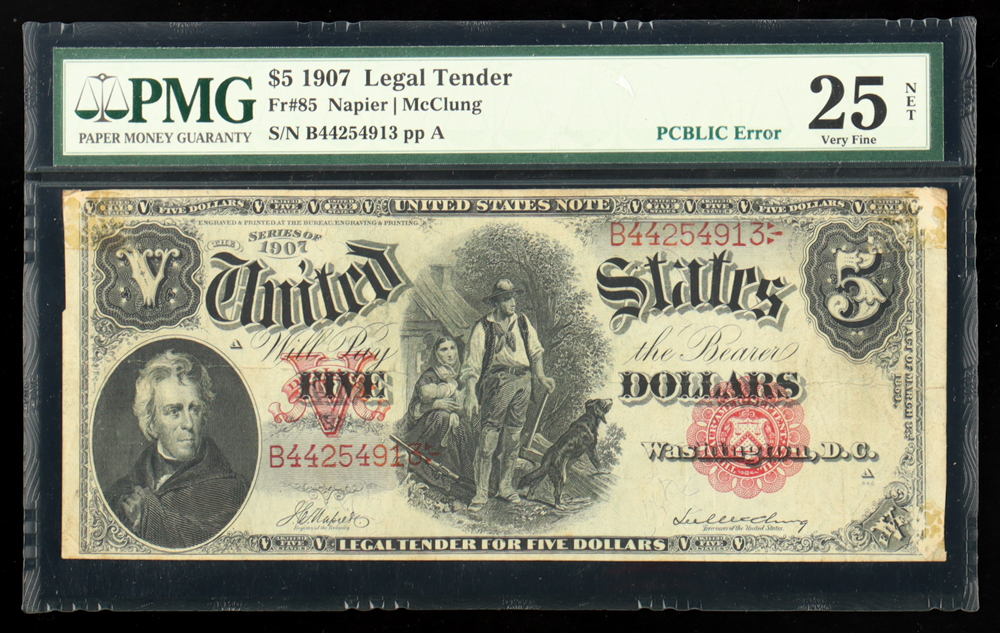 1907 United States $5 Five Dollar Legal Tender - PCBLIC Error - Napier | McClung (PMG VF25)