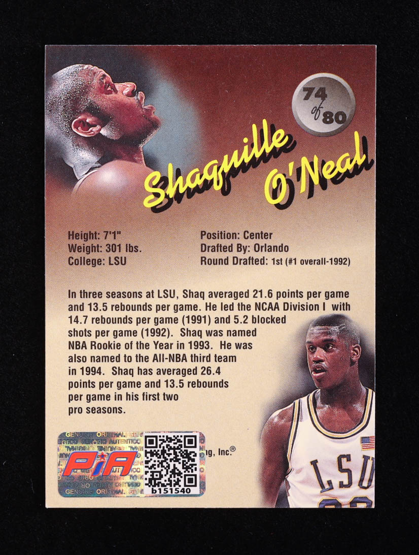 Shaquille O'Neal Signed 1995 Classic Superior Pix #74 (PIA)