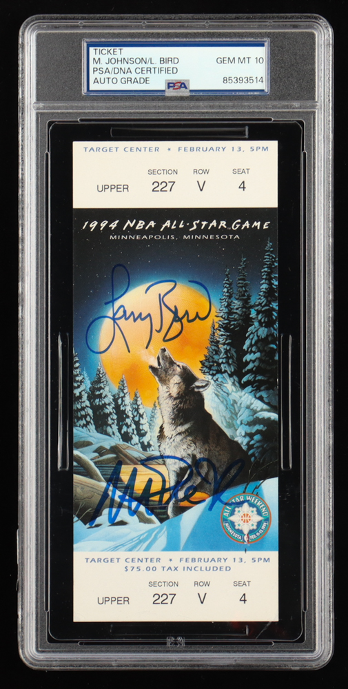 Magic Johnson & Larry Bird Signed 1994 NBA All-Star Game Ticket (PSA | Auto Grade 10)