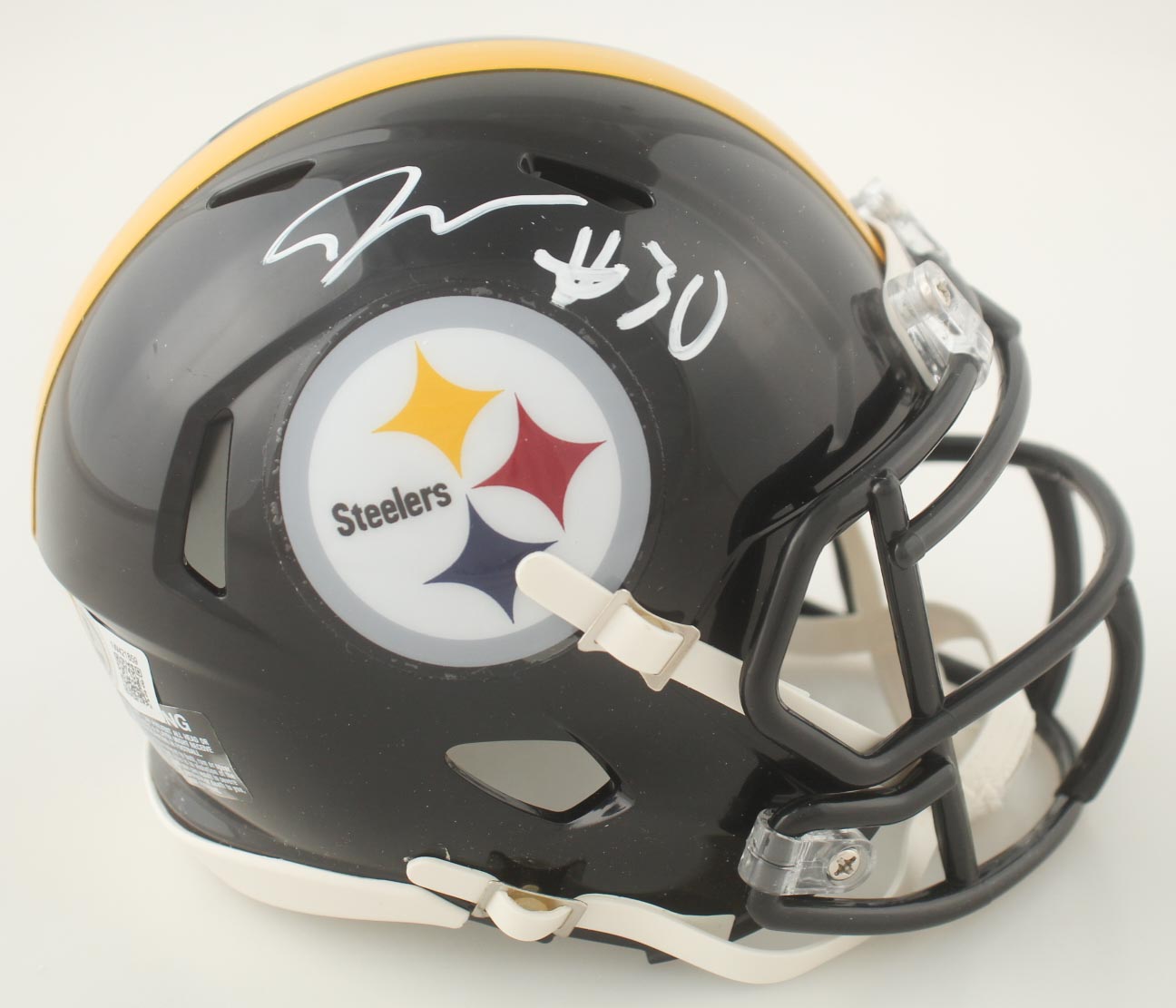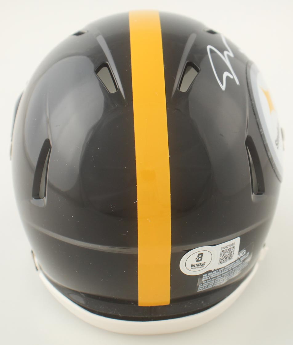 Riddell Pittsburgh Steelers Speed Mini Helmet has been hand-signed by Jaylen Warren.