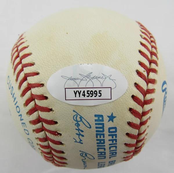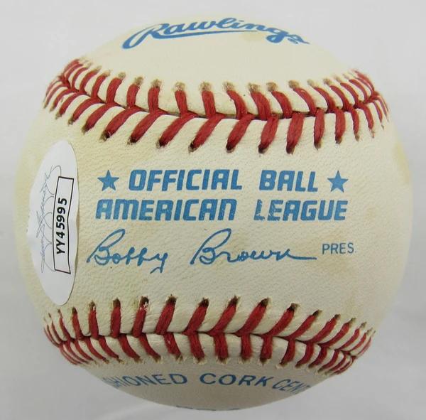 Rawlings Official American League baseball. Hand-signed by Joe DiMaggio (New York Yankees, HOF, D. 1999).