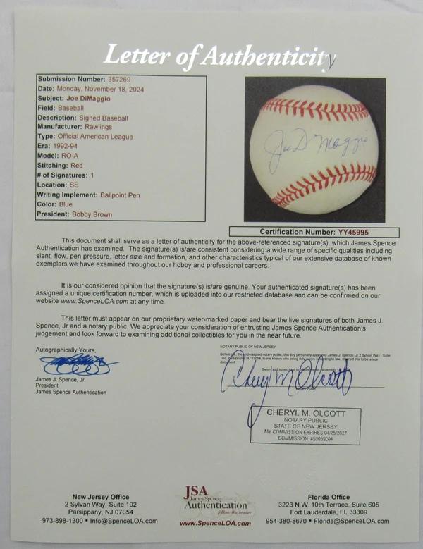 Joe DiMaggio Signed OAL Baseball (JSA)