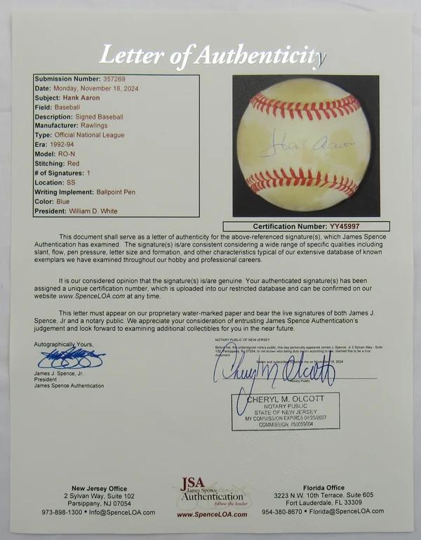 Hank Aaron Signed ONL Baseball (JSA)