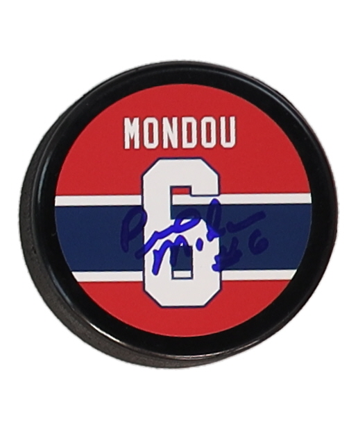 Montreal Canadiens Logo Hockey Puck. Hand signed by Pierre Mondou.