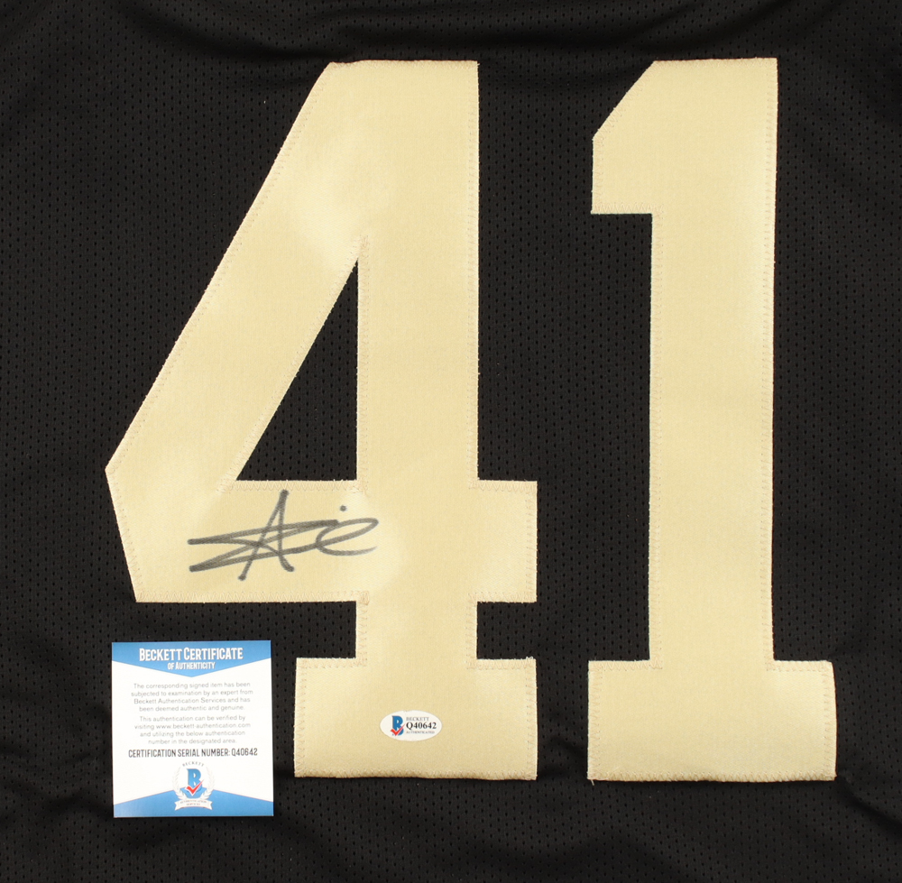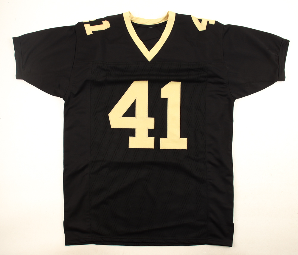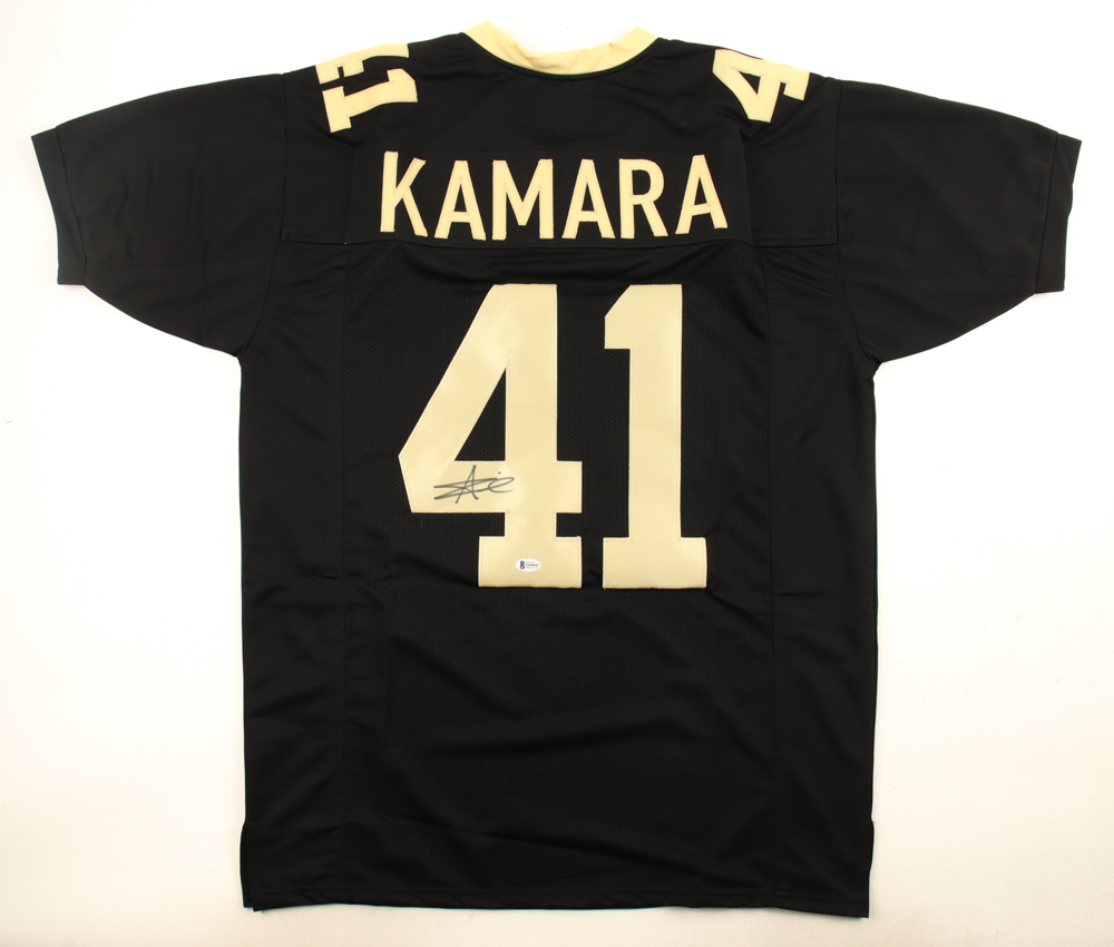 Custom jersey with everything sewn on, size XL. Hand-signed by Alvin Kamara.
