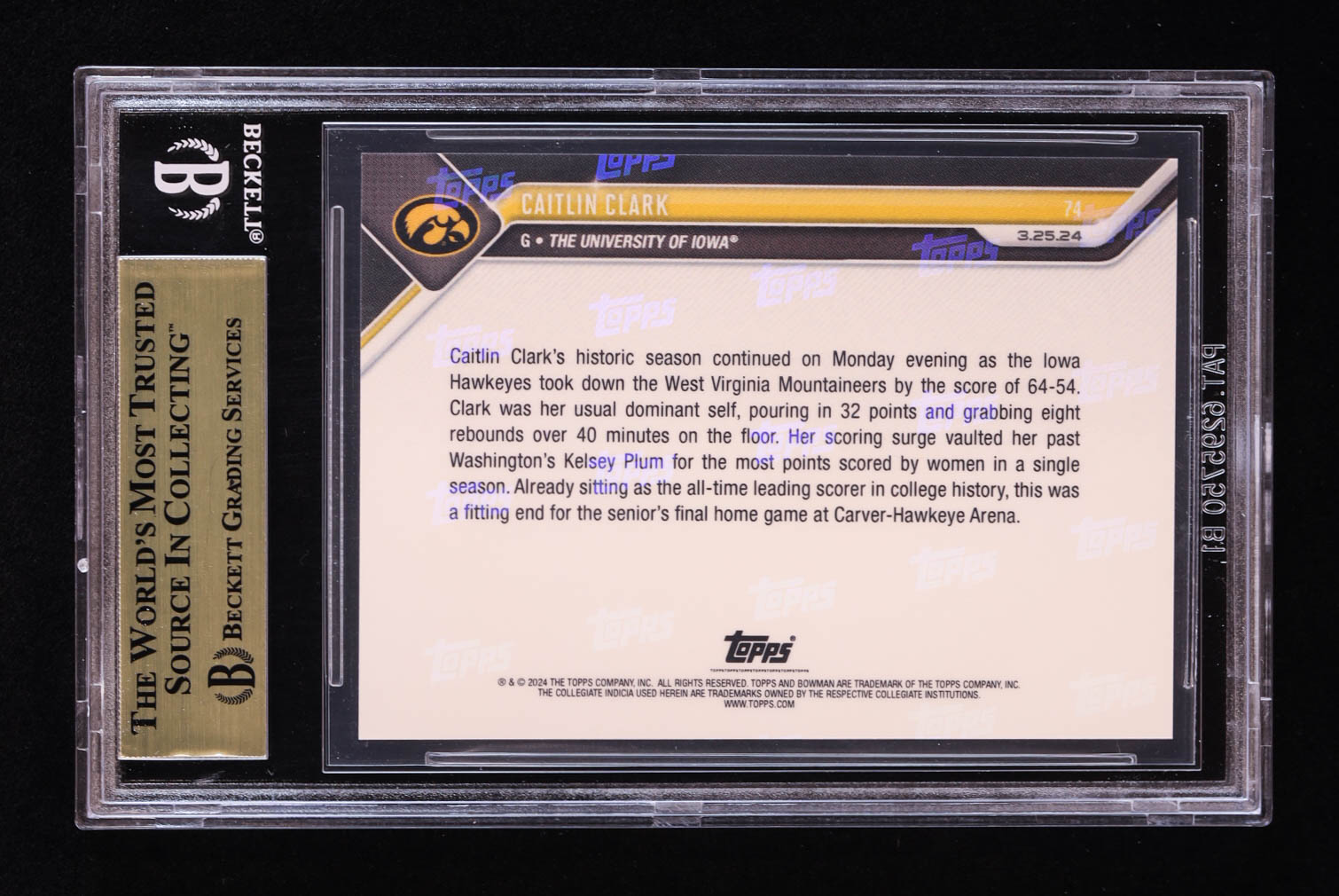 Card has been graded Beckett (BGS) 9.5. Please see photos for more details regarding the condition of the card (Iowa Hawkeyes).