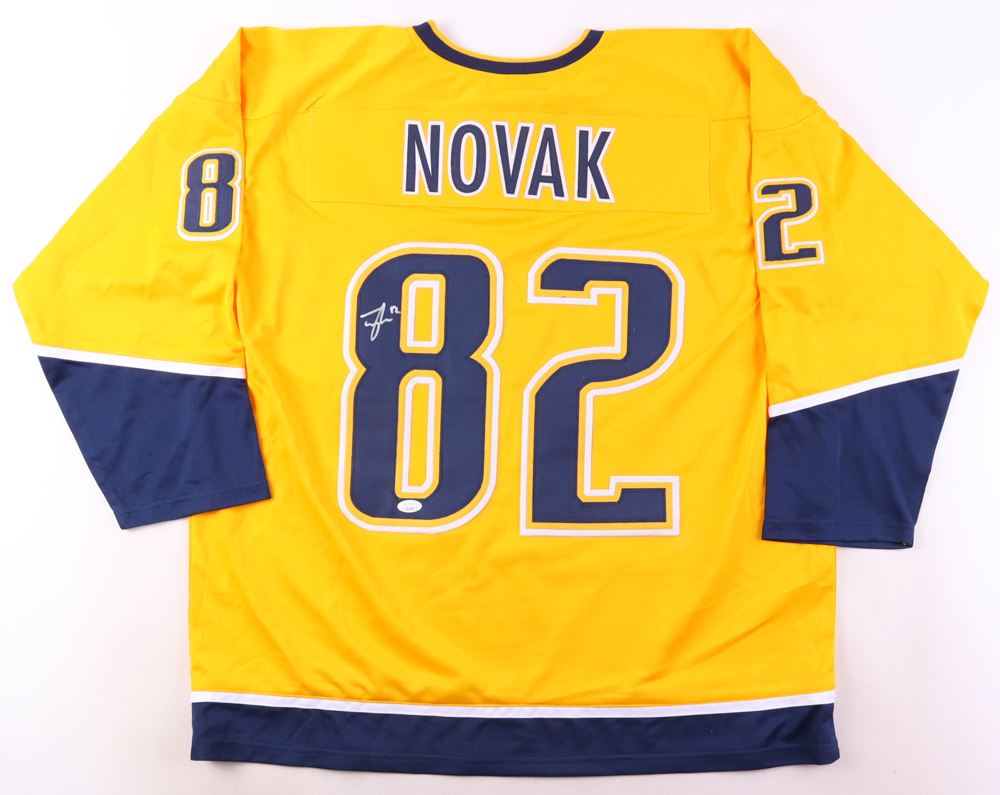 Custom jersey with everything sewn on, size XL. Hand-signed by Tommy Novak.
