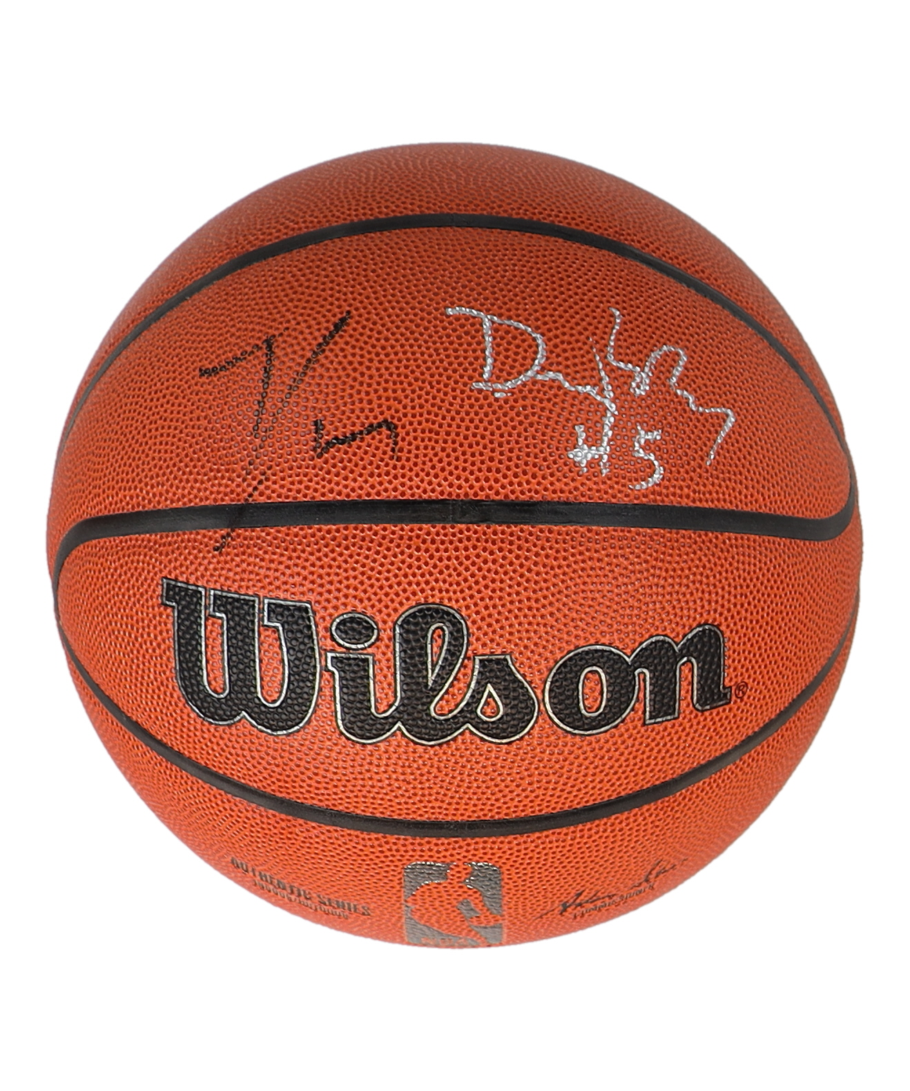 Wilson Authentic Series NBA basketball. Hand-signed by Dejounte Murray and Trae Young (Atlanta Hawks).