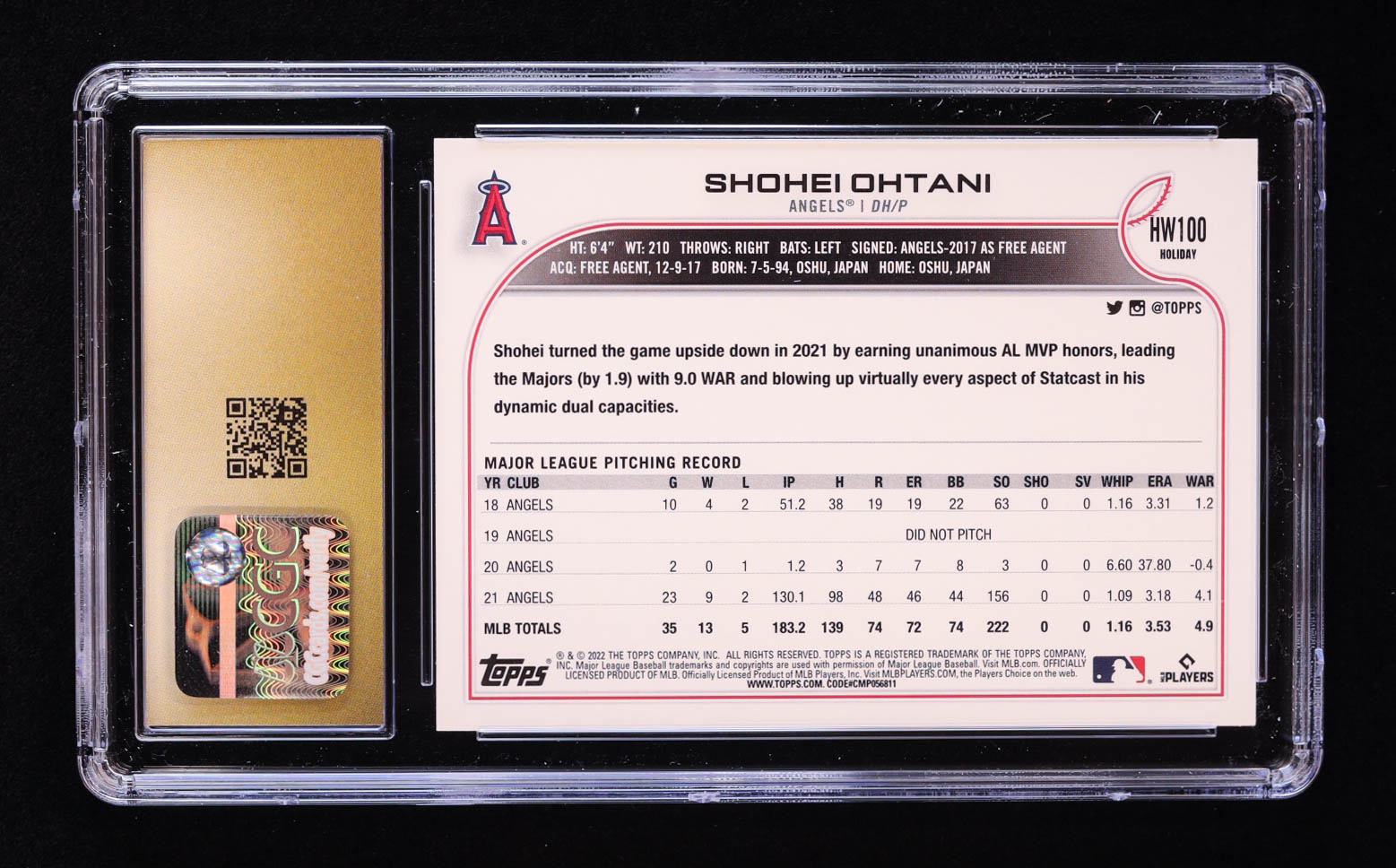 Shohei Ohtani 2022 Topps Holiday Metallic #HW100 (CGC 10 | Pristine Black Label)