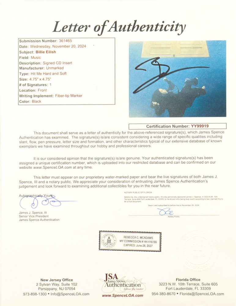 Billie Eilish Signed "Hit Me Hard And Soft" Custom Framed CD Insert Display With Disc (JSA)