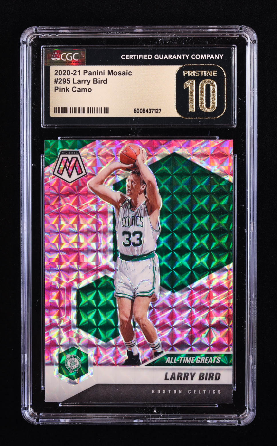 Larry Bird 2020-21 Panini Mosaic Mosaic Pink Camo #295 (CGC 10 | Pristine Black Label)