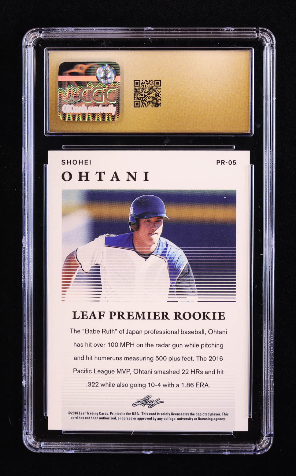 Shohei Ohtani 2018 Leaf Premier Rookies #PR05 RC (CGC 10 | Pristine Black Label)