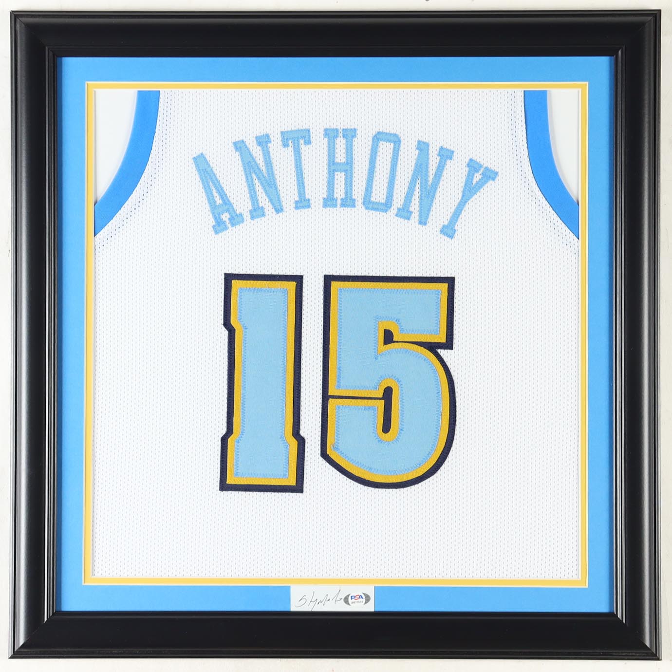 Carmelo Anthony Signed Custom Framed Cut Display With Jersey (PSA)