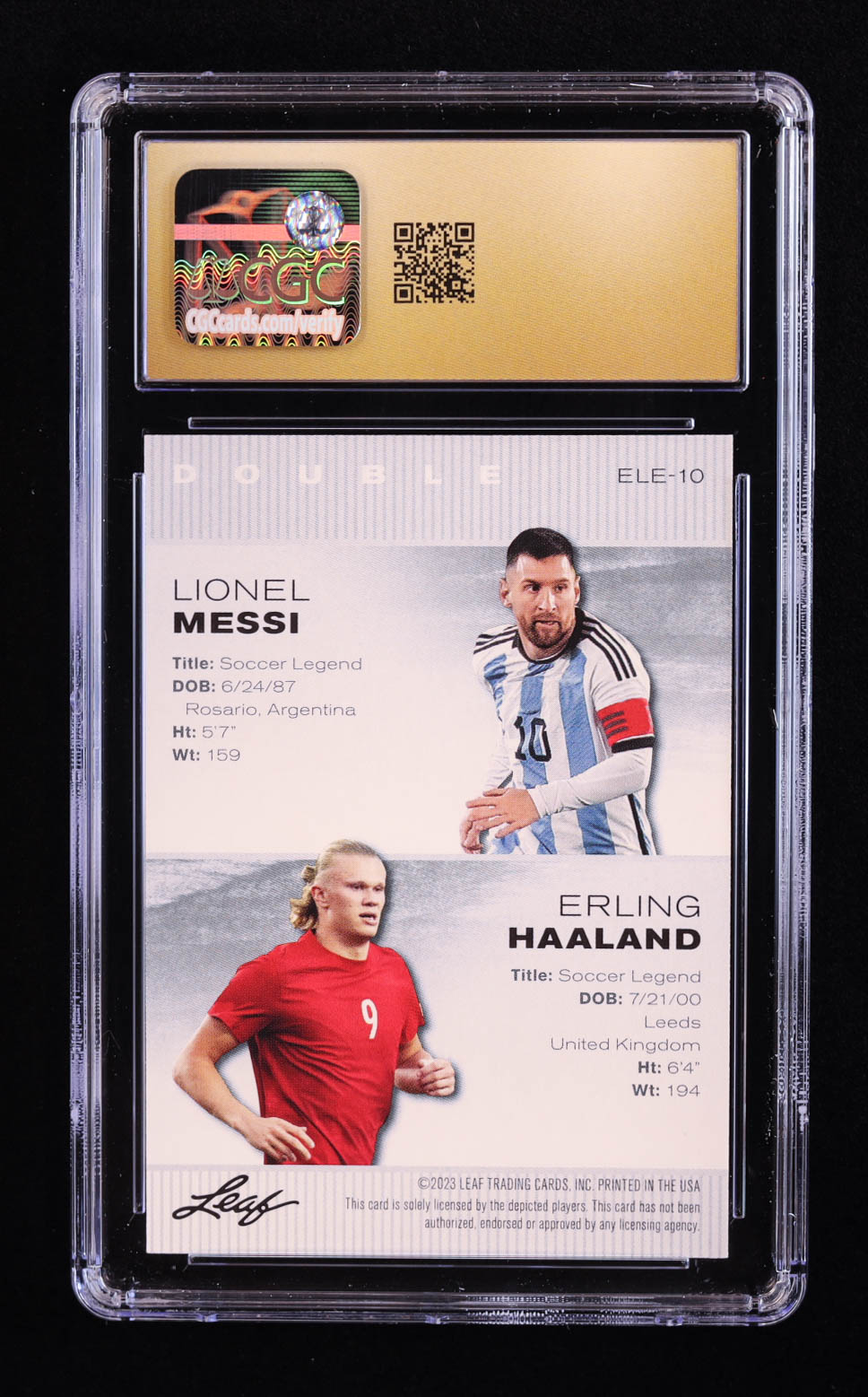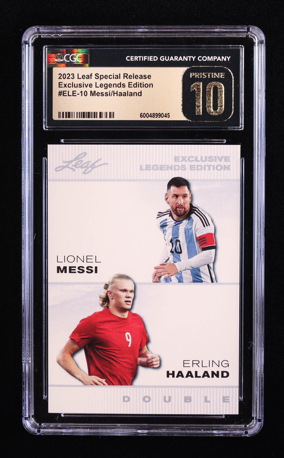 Lionel Messi / Erling Haaland 2023 Leaf Special Release Exclusive Legends Edition #ELE10 (CGC 10 | Pristine Black Label)