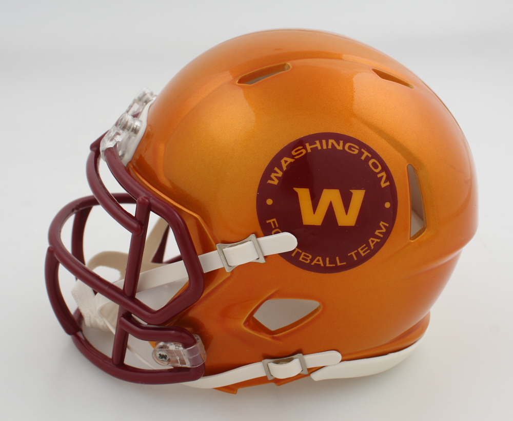 Riddell Washington Commanders Flash Alternate speed mini helmet has been hand-signed by Antonio Gibson.