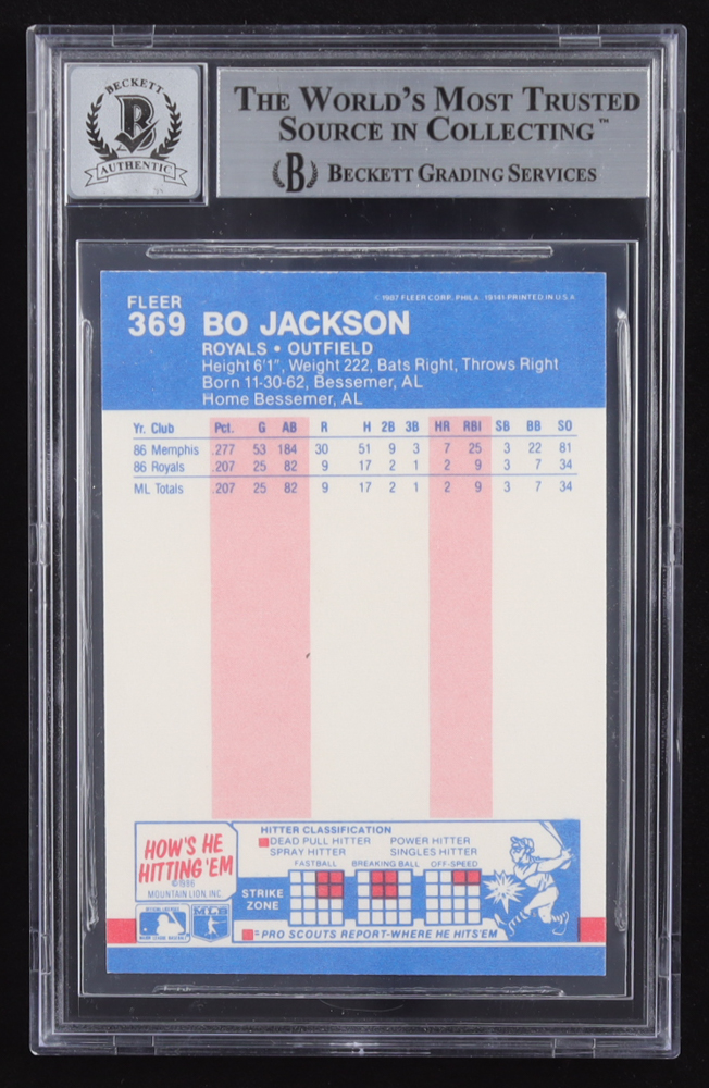 Bo Jackson Signed 1987 Fleer Glossy #369 RC (BGS | Auto 10)